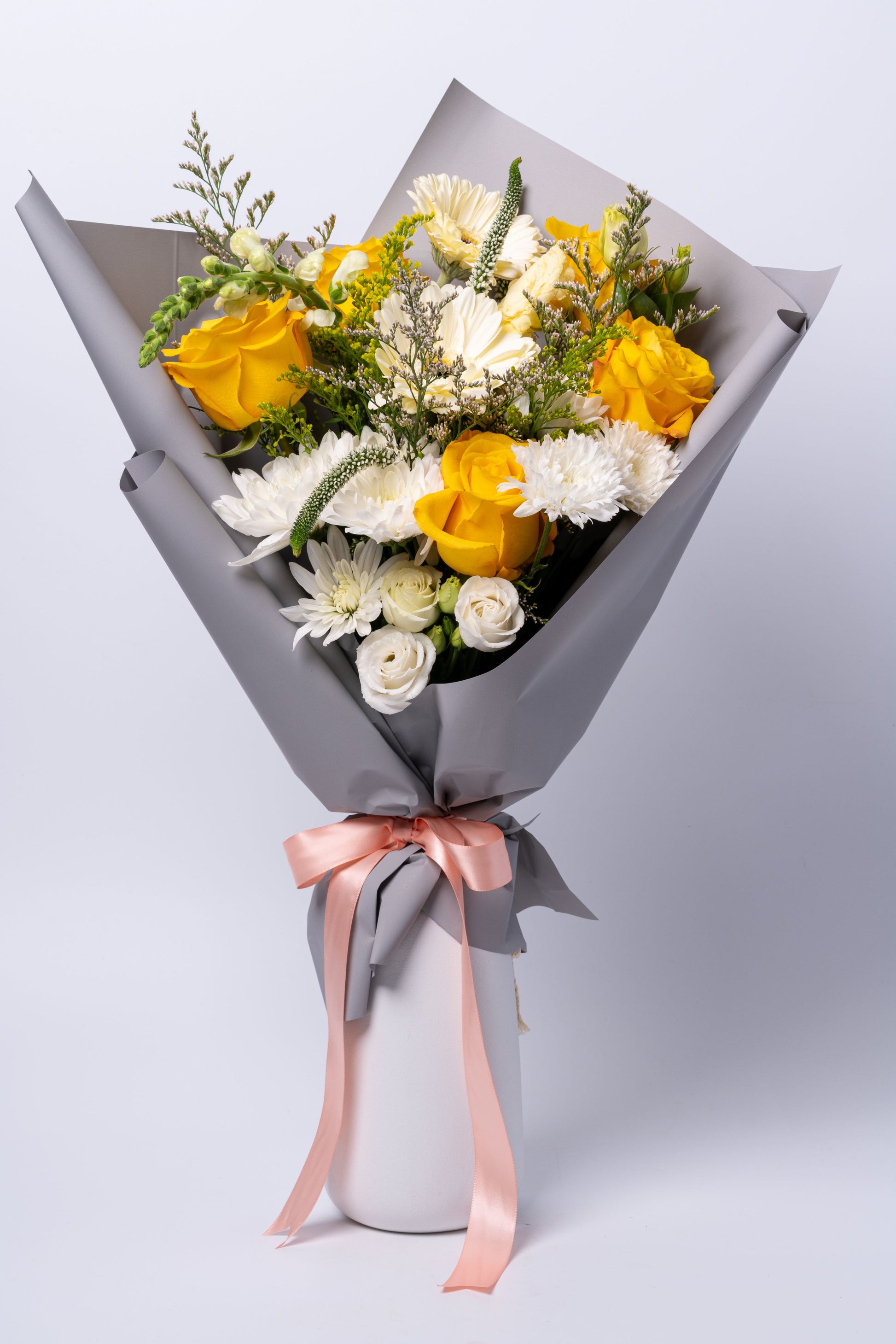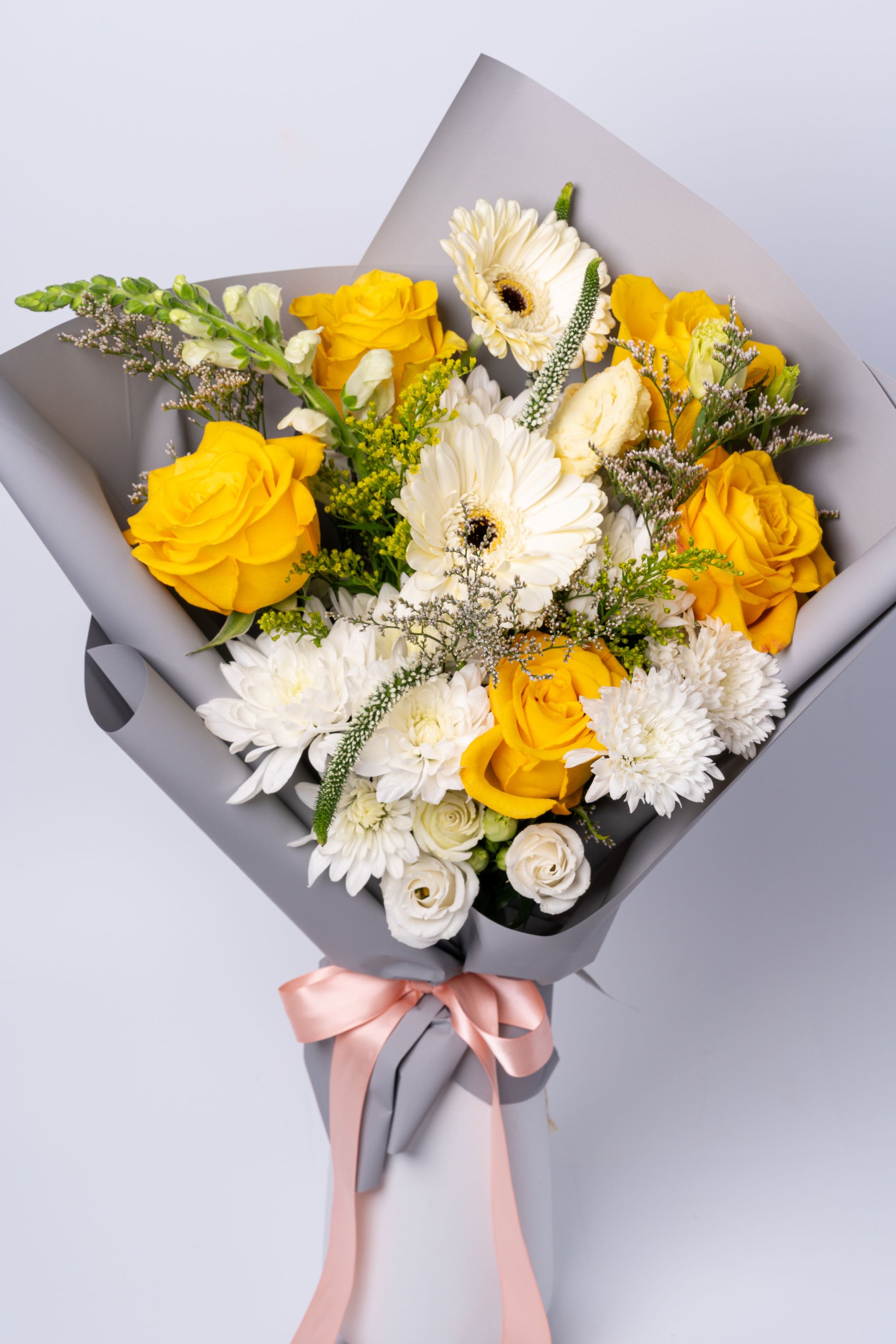 Textural Variety: Spikes of snapdragons and delicate filler flowers add height and movement for a modern, whimsical look.